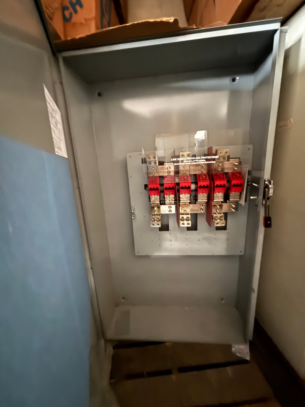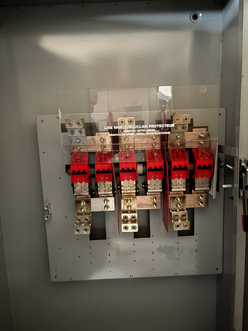 When the switch is open, the blades are physically visible—an NEC requirement for many lockout/tagout procedures.