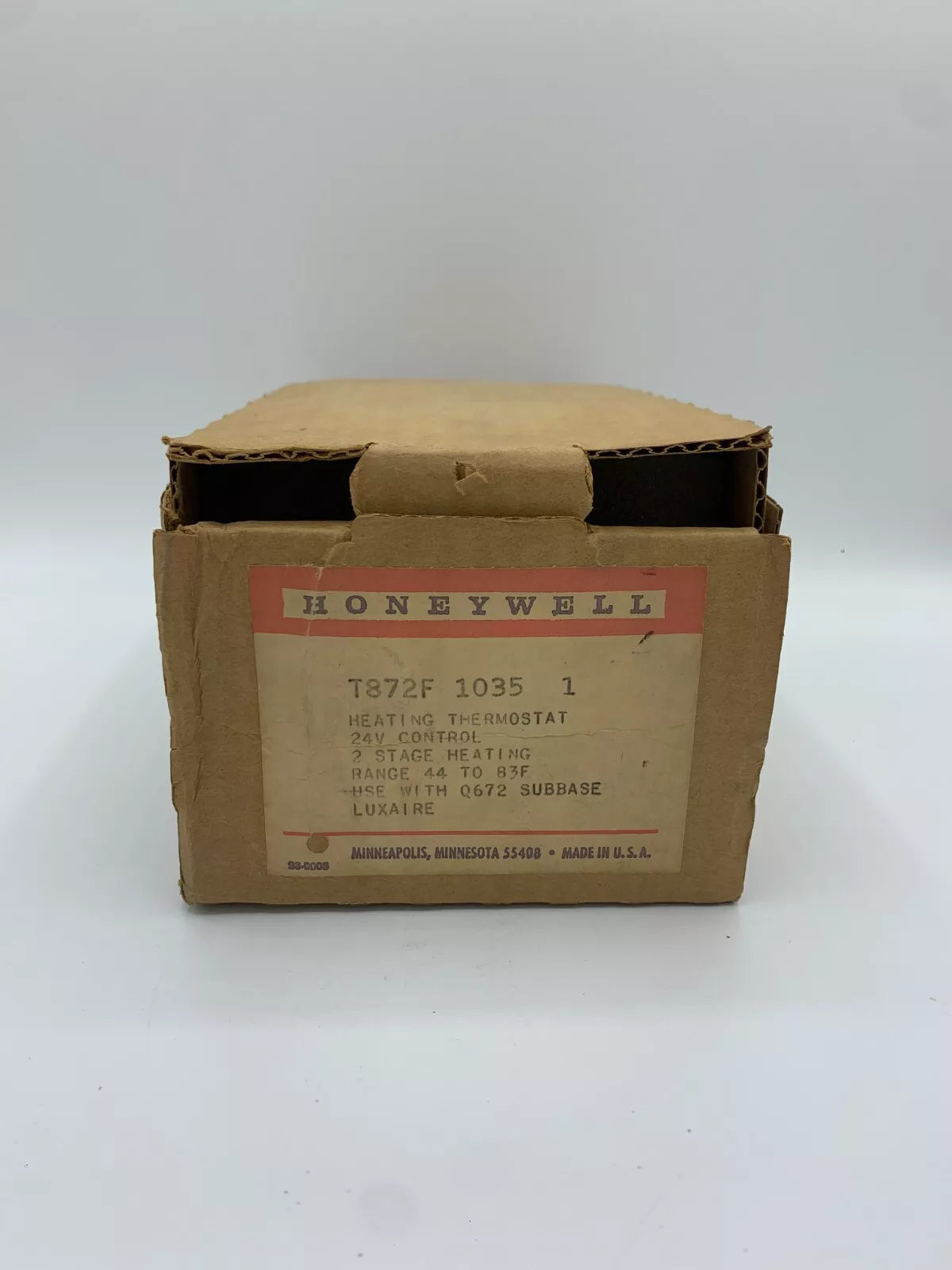 Tech Specs: T872F 1035 24 V CONTROL HP RPM 2 STAGE HEATING RANGE 44 TO 83F USE WITH Q672 SUBBASE Condition: New