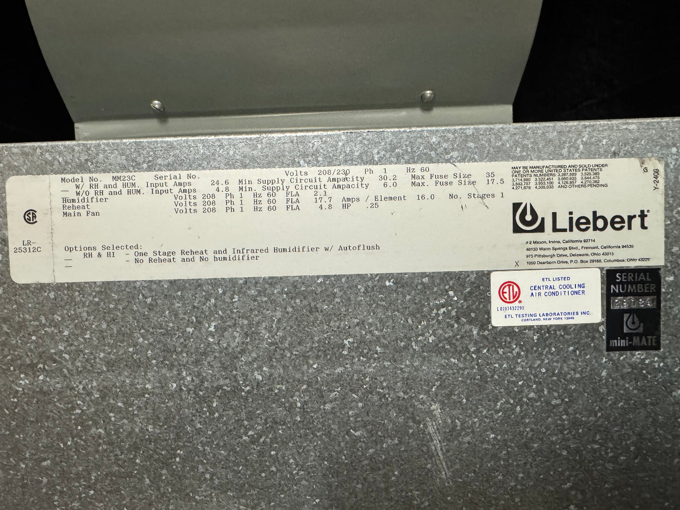 Liebert MM23C 2 Ton Mini-Mate Chilled Water Unit: