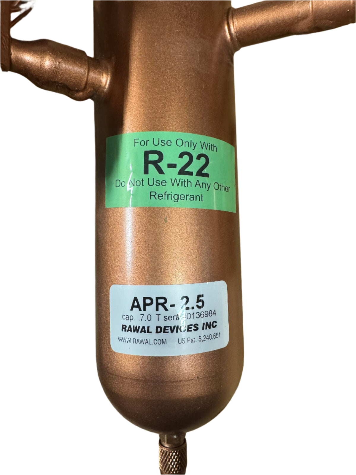 The Rawal Devices APR-2.5 Hot Gas Bypass is designed for HVAC systems using R-22 refrigerant and is suitable for 7-ton capacity systems. Here are its key specifications: